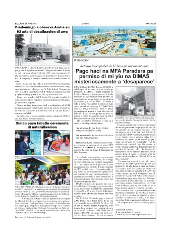 poz, y awa di regenbak a finaliza 93 aña pasa na Aruba. E fecha