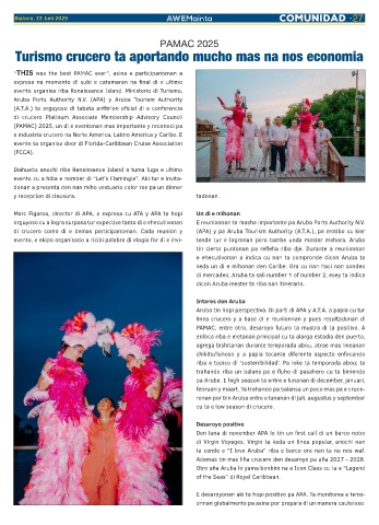 di crucero como di e demas participantenan. Cada reunion y (APA) y pa Aruba Tourism Authority (A.T.A.), pa motibo cu kier