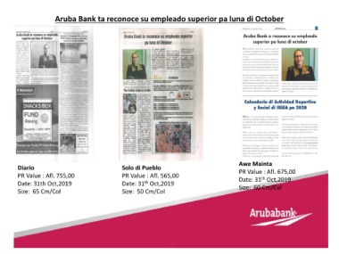 PR Value : Afl. 755,00                      PR Value : Afl. 565,00                            Date: 31  Oct,2019