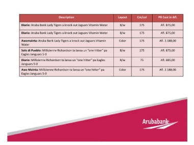 Diario: Aruba Bank Lady Tigers a knock out Jaguars Vitamin Water B/w 175 Afl. 875,00