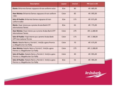 Diario: Hopi interes pa e prome Aruba Bank GTP B/w 65 Afl. 775,00