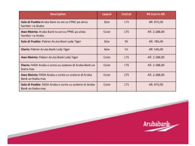 Diario: FADA Aruba a conta cu sostene di Aruba Bank un Color 175 Afl. 2.188,00