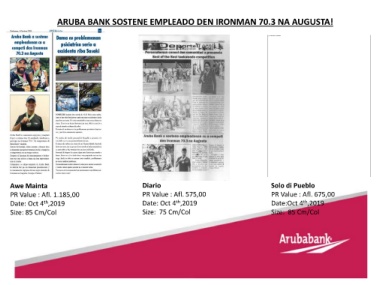 ARUBA BANK SOSTENE EMPLEADO DEN IRONMAN 70.3 NA AUGUSTA!