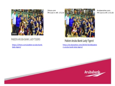 24ora.com Arubanative.com PR Cost in Afl. 172,50 PR Cost in Afl. 172,50 https://24ora.com/pabien-aruba-bank- https://arubanative.com/2019/10/28/pabie lady-tigers/ n-aruba-bank-lady-tigers/