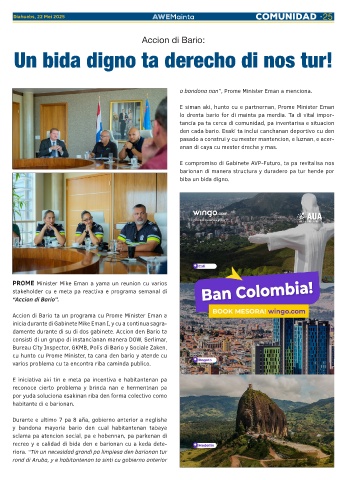 cu hunto cu Prome Minister, ta cana den bario y atende cu