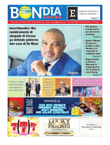 Diahuebs 22 di Mei 2025 www.bondia.com Email: noticia@bondia.com Tel: 582-7800 Fax: 582-7044 1,75 Florin