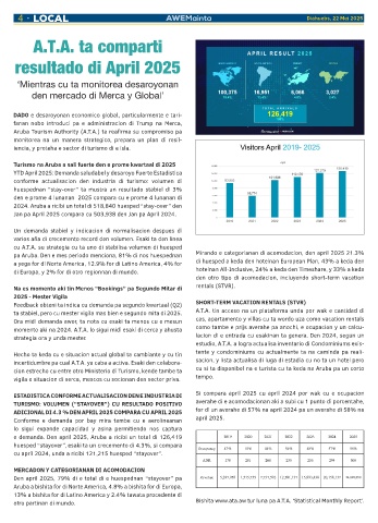 pa Aruba. Den e mes periodo menciona, 81% di nos huespednan Mirando e categorianan di acomodacion, den april 2025 21.3%