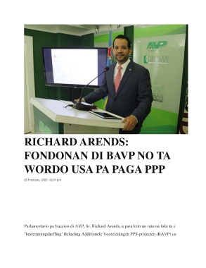 Parlamentario pa fraccion di AVP, Sr. Richard Arends, a para keto un rato na loke ta e