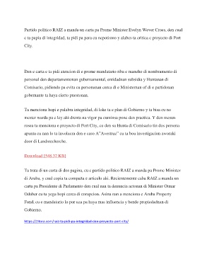 Ta trata di un carta di dos pagina, cu e partido politico RAIZ a manda pa Prome Minister
