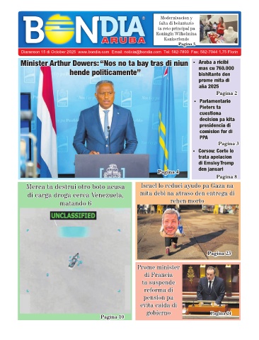 Diaranson 15 di October 2025 www.bondia.com Email: noticia@bondia.com Tel: 582-7800 Fax: 582-7044 1,75 Florin
