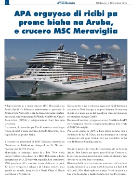 Diaranson, 6 november pa 7’or di mainta e zonido ge- di MSC Meraviglia.