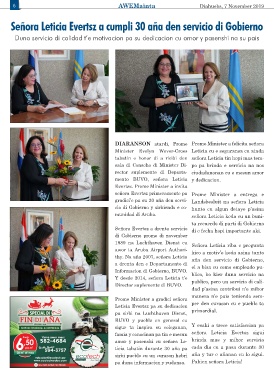 Señora Leticia Evertsz a cumpli 30 aña den servicio di Gobierno