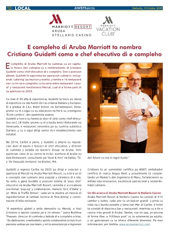 ehecutivo na Aruba Marriott Resort, caminda el a encabesa lidad culinario.