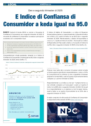Confiansa di Consumidor pa e segundo trimester di 2025. E Actual ambos a baha cu, respectivamente, 0,8 punto di indice