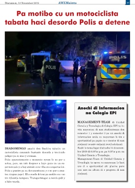 DIADOMINGO anochi den Bushira tabatin un Esaki lo tuma lugar diahuebs 14 di novem-