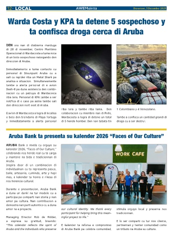 “This calendar reflects the spirit of E kalender ta reforsa e compromiso partnernan y henter comunidad como