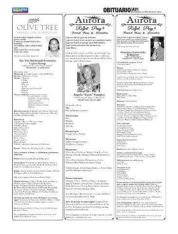 Catolico na Noord November 2025 na Aurora Funeral Home di 9or november 2025 pa 2or di atardi te cu 4or di atardi na misa Santa