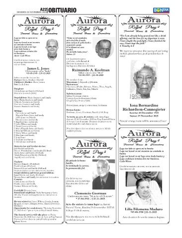 † Angelica Jones and family di 9or pa 11or di mainta. Despues di entiero no ta Funeral arrangements will be announced Later
