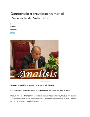 Lejuez Leynan di Aruba no conoce Facebook y no ta basa riba redashi