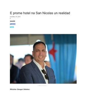 E prome hotel na San Nicolas un realidad November 15, 2019 0 SHARE Facebook Twitter - Advertisement - Minister Dangui Oduber: