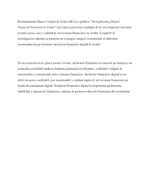 recomendacion pa fortalece inclusion financiero digital di Aruba.