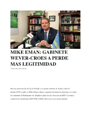 partido AVP ta traha, sr Mike Eman a duna e siguiente declaracion relaciona cu e retiro