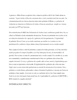 contesta: “Ayera Aruba a biba otro momento den e crisis constitucional den nos pais. Na
