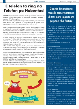 trankilidad bek’ ta algun di e yamadanan cu Telefon pa Hubentud ta 3 datonan cu mester ta riba factura