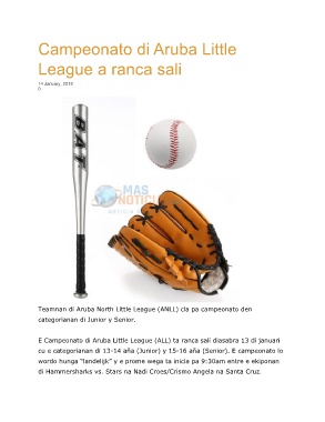 E Campeonato di Aruba Little League (ALL) ta ranca sali diasabra 13 di januari