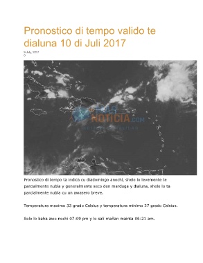 Pronostico di tempo ta indica cu diadomingo anochi, shelo lo levemente te