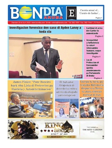 Diamars 24 di Juni 2025 www.bondia.com Email: noticia@bondia.com Tel: 582-7800 Fax: 582-7044 1,75 Florin