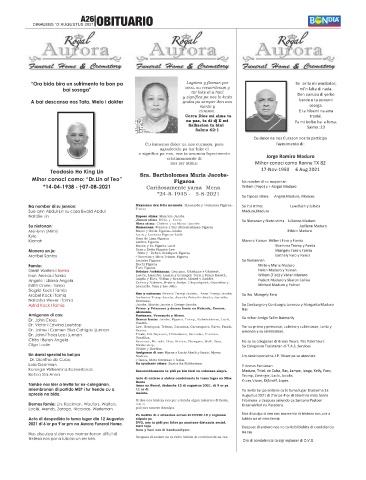 2021 di 6’or pa 9’or pm na Aurora Funeral Home. DVG, nos ta pidi por fabor pa mantene distancia social,