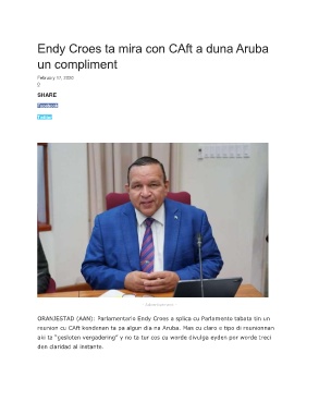 ORANJESTAD (AAN): Parlamentario Endy Croes a splica cu Parlamento tabata tin un