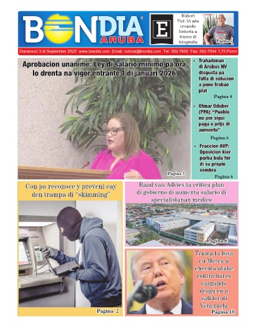 Diaranson 3 di September 2025  www.bondia.com  Email: noticia@bondia.com  Tel: 582-7800  Fax: 582-7044 1,75 Florin