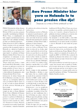 aki na Aruba, ya cu mientras cu ta emplea mas hende de servicio di go- landa pa deliberacion, Prome Minister Wever