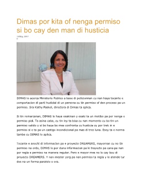 permiso. Sra Kathy Paskel, directora di Dimas ta splica.