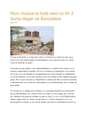 awor cu tin tres dump ilegal na Parkietenbos, niun musca ta bula. Sr. Lionel