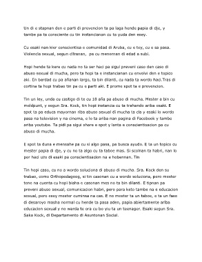spot ta pa educa mayornan riba abuso sexual di mucha ta cla y esaki lo wordo
