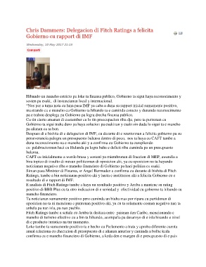 “Nos por a tuma nota cu luna pasa IMF ya caba a duna su rapport inicial sumamente positivo,