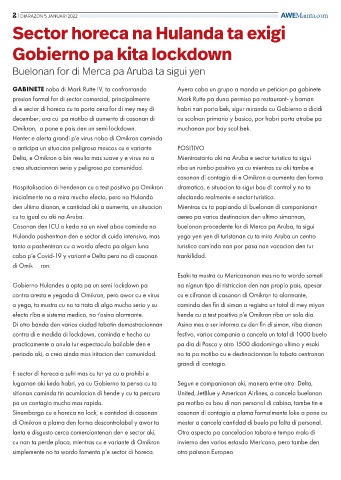 Delta, e Omikron a bin resulta mas suave y e virus no a Mientrastanto aki na Aruba e sector turistico ta sigui