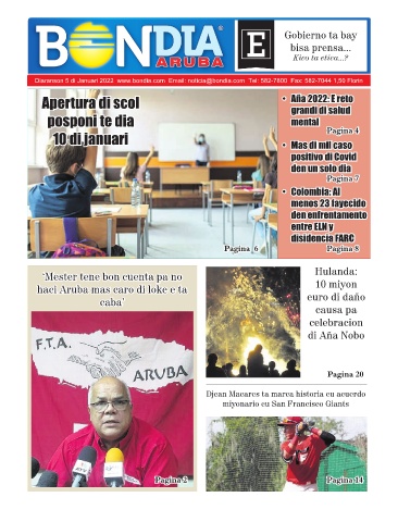 Diaranson 5 di Januari 2022 www.bondia.com Email: noticia@bondia.com Tel: 582-7800 Fax: 582-7044 1,50 Florin