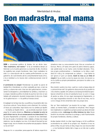 materno, nos ta adapta nos mes. Si Aruba di berdad ta nan Aruba mester dicidi si e kier sigui hunga e rol di e anfitrion