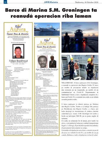 duna man pa condolencia y usamondkapje. no ta ricibi bishita na cas. cautela, Defensa a isolá e tripulacion, ta bon di salud.