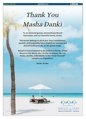 Bucuti & Tara is honored to be ranked as the No. 5 Best