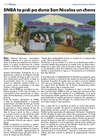 Errol de Freitas, Secretario di SNBA, ta trece cos bon pa San Nicolas. Cu construcción di tur hotel