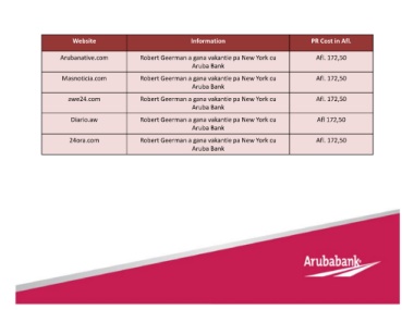Website Information PR Cost in Afl.