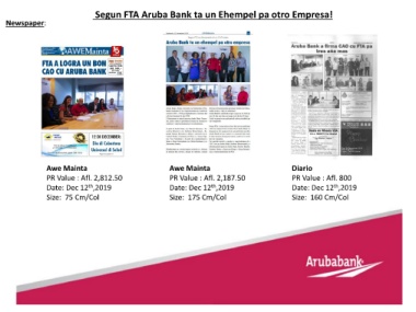 Segun FTA Aruba Bank ta un Ehempel pa otro Empresa!