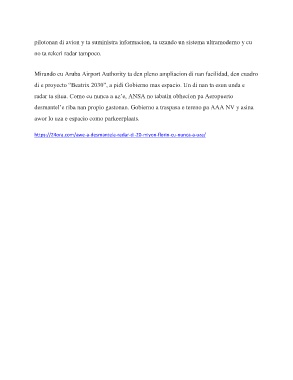 Mirando cu Aruba Airport Authority ta den pleno ampliacion di nan facilidad, den cuadro