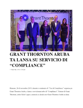 Grant Thornton Aruba, a lansa e servicionan nobo di “Compliance”. Partner di Grant