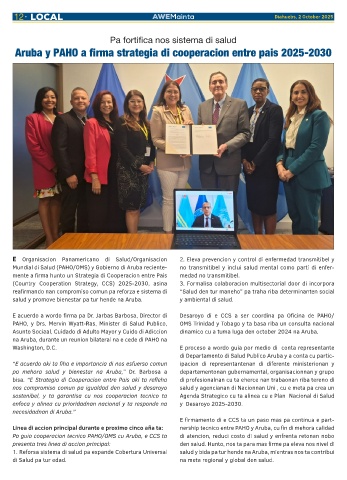 Aruba y PAHO a firma strategia di cooperacion entre pais 2025-2030